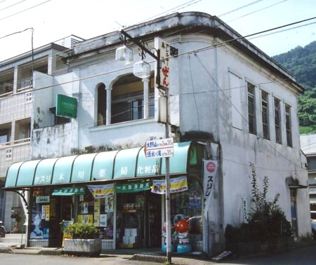 一方の木川薬局は、飾り柱のついたバルコニーが特徴的な店舗建築。