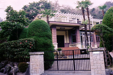 作家の里見とん^も加わって設計したという外観は、鎌倉で唯一の「ライト風」住宅として今も健在です。