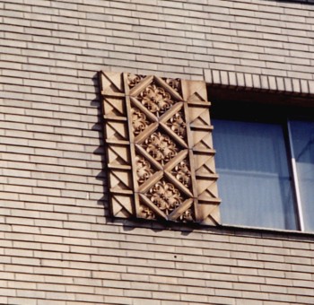 3階にワンポイント的に取り付けられた、植物を図案化したテラコッタなど、
