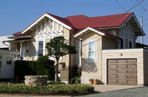 オリジナルでは無いと思いますが、赤い屋根とベージュの壁面もいいですね。