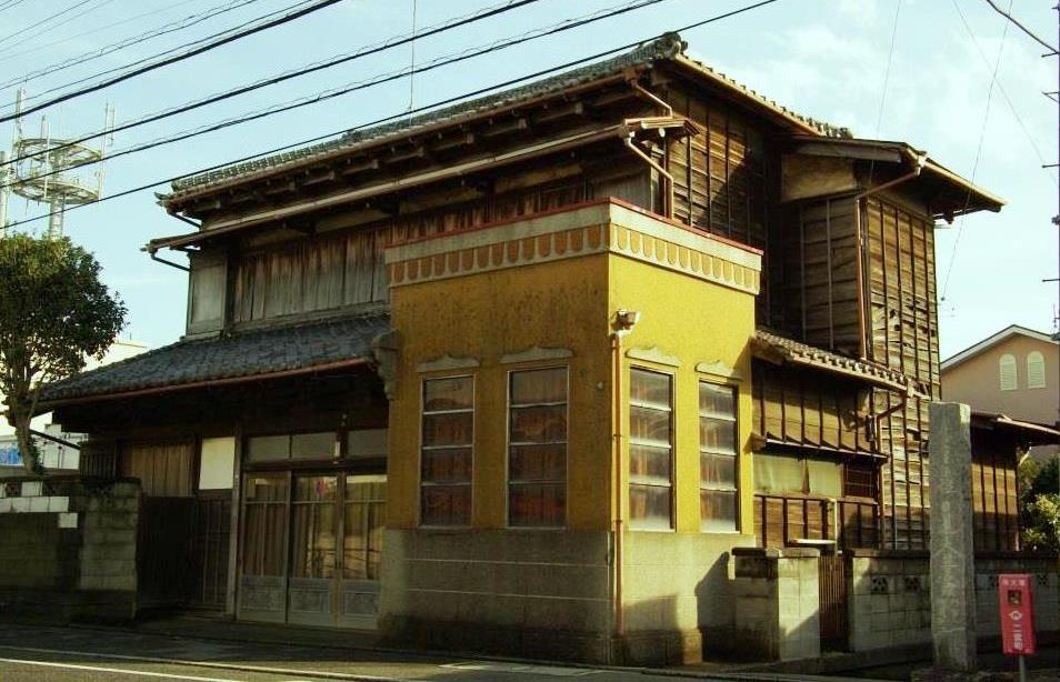 このように四角い一間洋館が、出桁の町屋建築に付属するのは珍しいです。