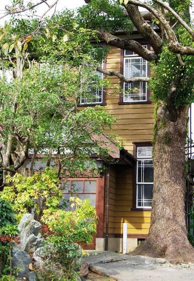 玄関前で力強く枝を広げる大木が印象的ですが、