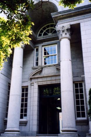 特に、正面玄関では、2本の見事なコリント式円柱が構え、入口上部にはブロークンペディメント、