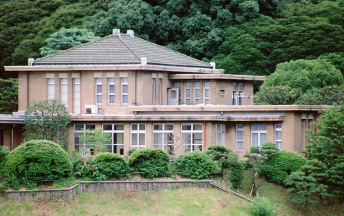 外観は、当時帝国ホテルの建設で一世を風靡した、フランク・ロイド・ライトのデザインにならったもので、