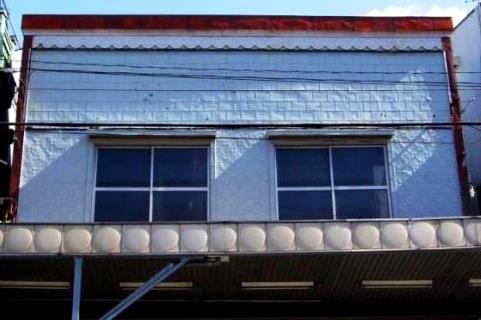 ![]() エノモト写真店(上町2-46) 昭和初期 スクラッチタイル張りにアーチ窓。もはや看板建築の域を超えています。 |