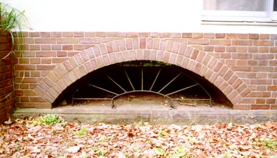 |  床下の通気を考えてのことか、大きく口を開けたアーチ型の換気口が特徴的。 |