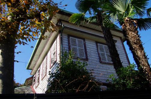 大きな和様の住宅に2階建ての洋館が接続した住宅です。