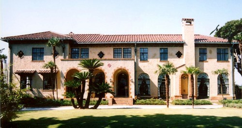 赤い瓦屋根の華麗なスパニッシュスタイルの洋風住宅です。