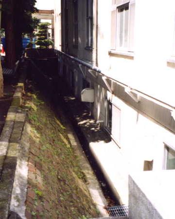 建物前部の「堀」は地下室の換気と採光の為。モーガン得意の半地下構造。