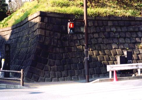 登りはじめて1・2分、やがて目の前に現れてくるのが、野毛山入口の目印となる、亀甲積みの擁壁です。