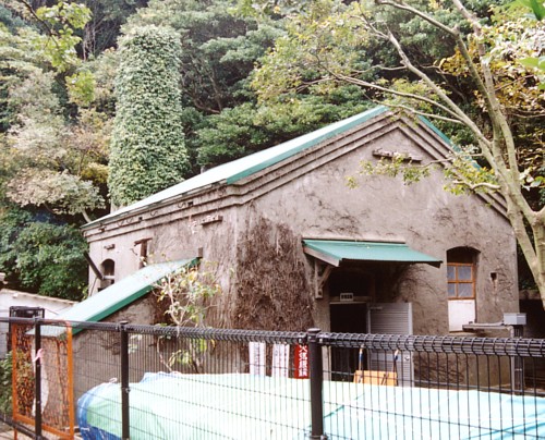 その島内への登り口のあたり、外壁にツタが絡まった古い建物があります。