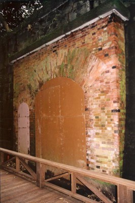 島内で特に目をひくのが、煉瓦で組まれた数々のトンネルや弾薬庫。