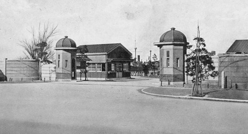 昭和初期に発行された絵葉書から。門の向こうに、衛兵の詰め所らしき建物も見えます。