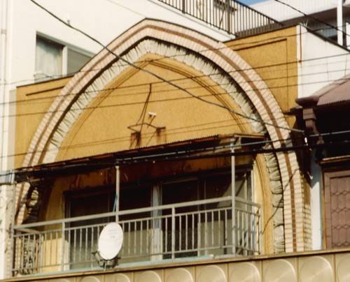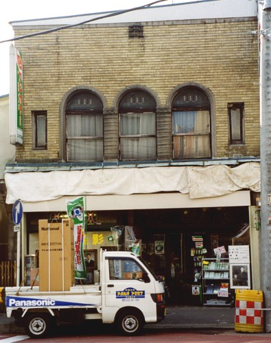 ![]() エノモト写真店(上町2-46) 昭和初期 スクラッチタイル張りにアーチ窓。もはや看板建築の域を超えています。 |